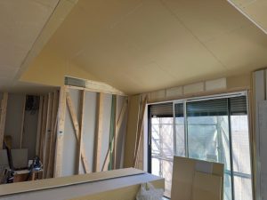 天井ボード張りはかなりの力作業で 大工さんも毎回、ヒーヒー言うています(笑) 大工さん頑張って(^^)/ |